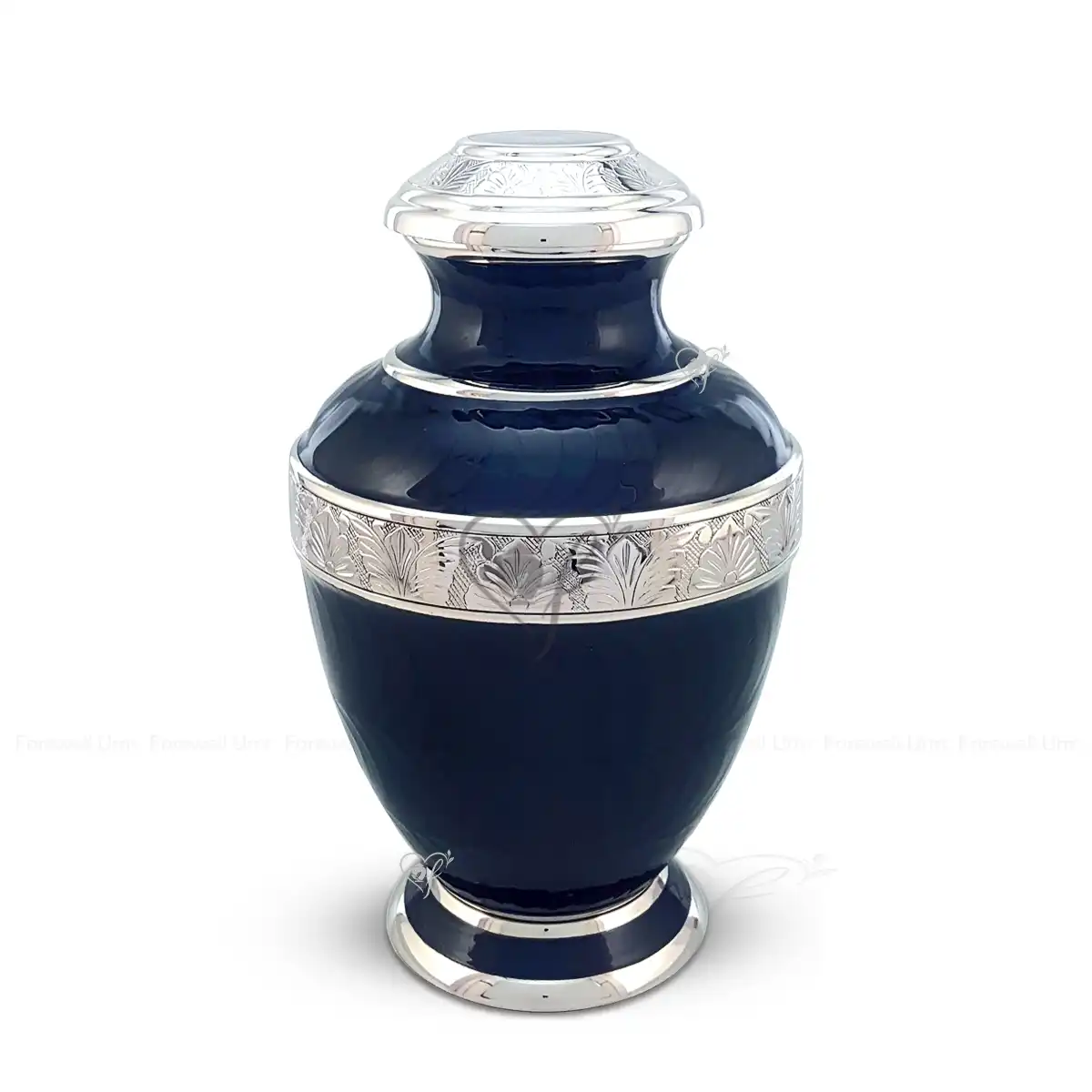 The Arcadia urn provides a sophisticated and stately tribute for a beloved adult. We meticulously craft each vessel from high-quality brass to ensure a permanent memorial. This 11-inch urn features a deep and lustrous Black Meena finish that radiates dignity and timelessness. Consequently, it serves as a reliable and elegant resting place for your home. Furthermore, the unique Arcadia shape is enhanced by intricate Nickel-finished brass accents for a striking contrast.