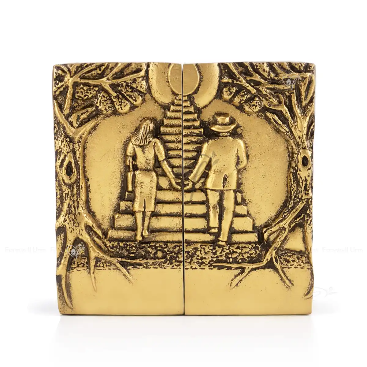 The Eternal Reunion set offers a deeply moving and symbolic tribute for two souls shared in life. We meticulously craft this set from high-quality aluminum to provide a solid and permanent memorial. This companion set consists of two individual urns that, when placed together, complete a stunning artistic scene. Consequently, it serves as a powerful resting place that celebrates an everlasting bond. Furthermore, the vibrant Antique Gold finish highlights the intricate, cast embossed design that gives the piece a substantial, three-dimensional texture.